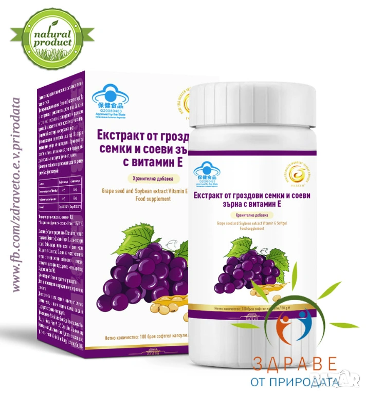 ЕКСТРАКТ ОТ ГРОЗДОВИ СЕМКИ И СОЕВИ ЗЪРНА С ВИТ. Е → Обява 54124333