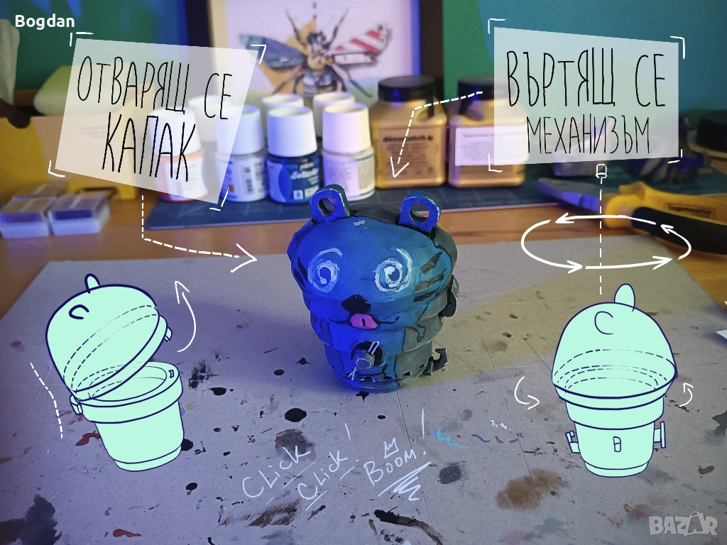 Материали : Био разградим PLA, акрил, метал, епоксидна смола