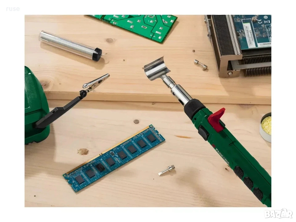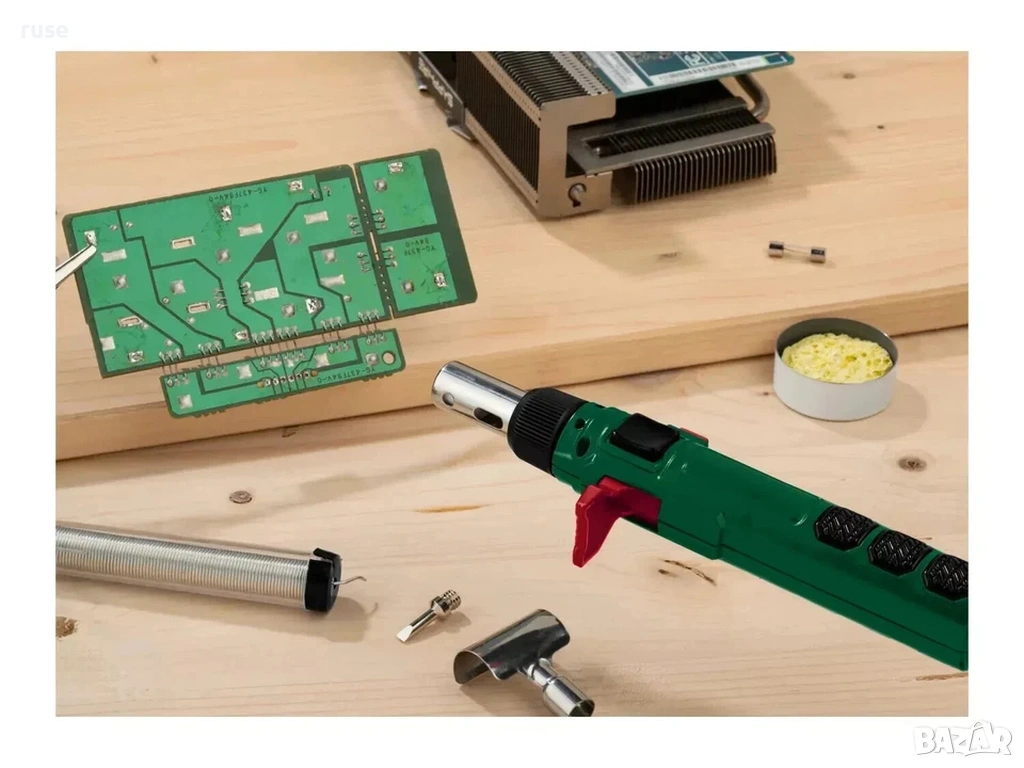 - Универсален/ мултифункционален уред 3в1 с плавно регулиране на мощността: горелка, поялник и пистолет за горещ въздух