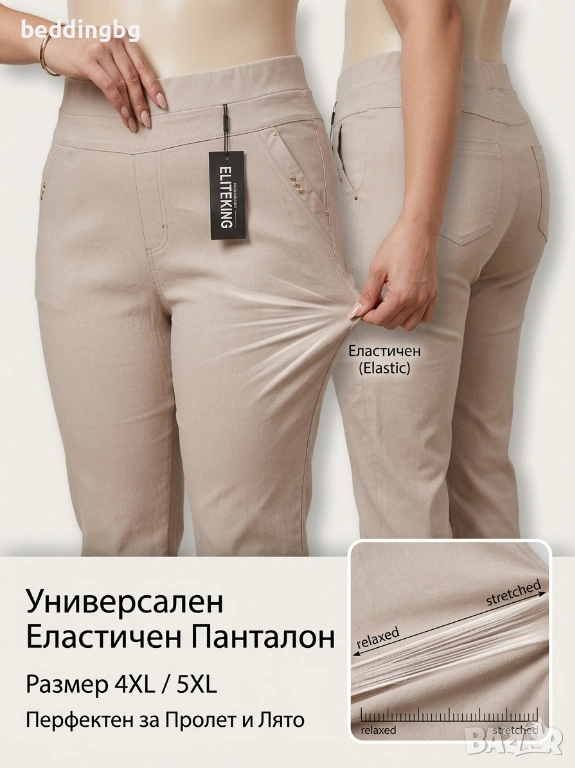 Еластичен Макси Панталон ELITEKING - Размер 4XL/5XL, Бежов