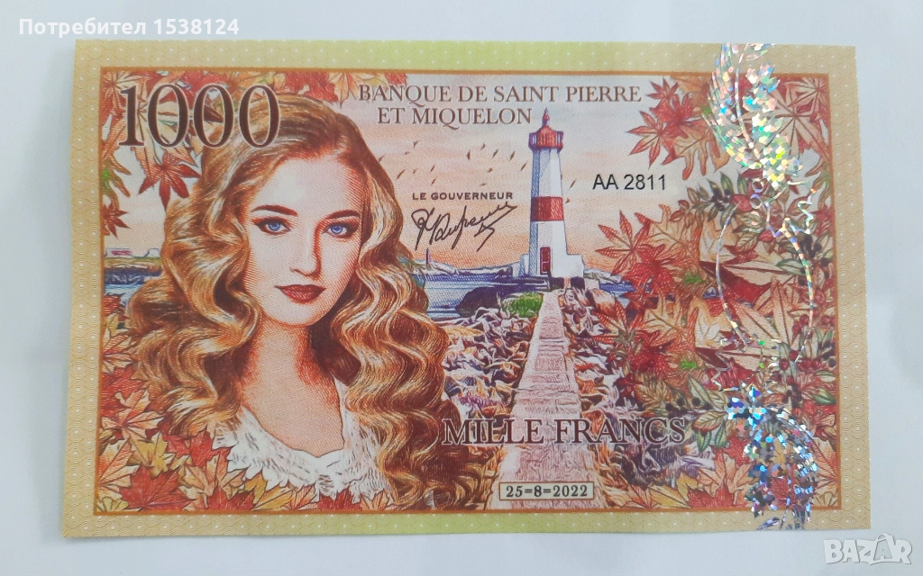 Сен Пиер и Микелон 1000 франка - частно издание UNC