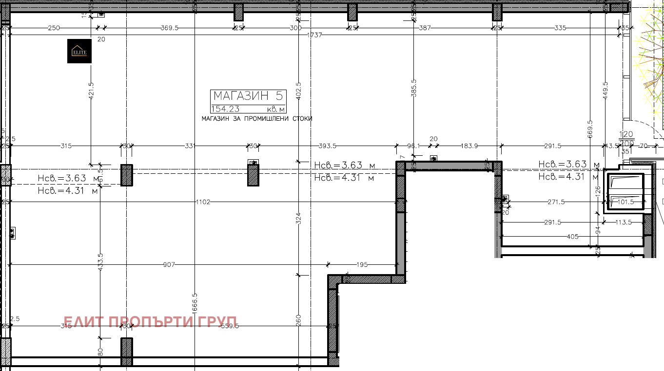 Обща търговска площ: 154 кв.м.