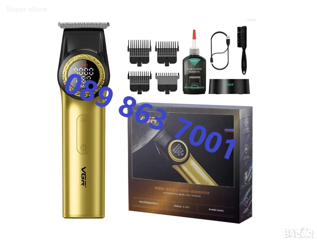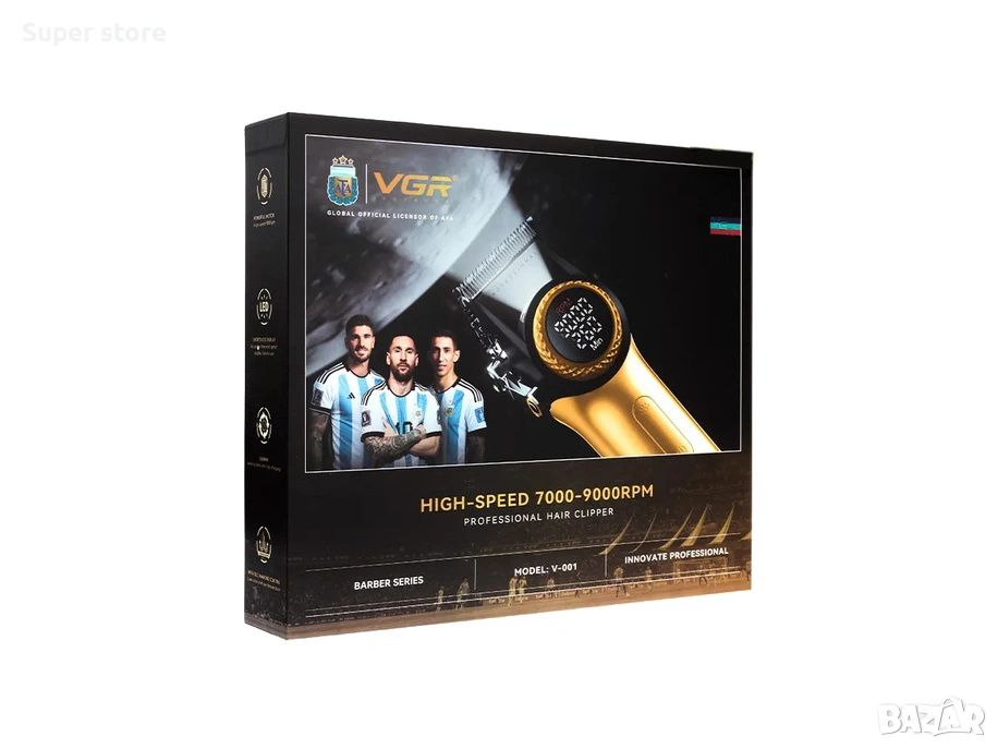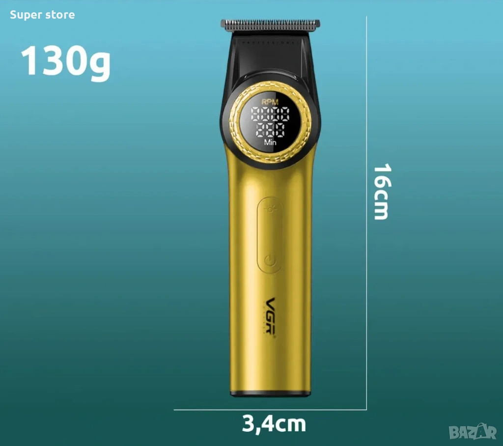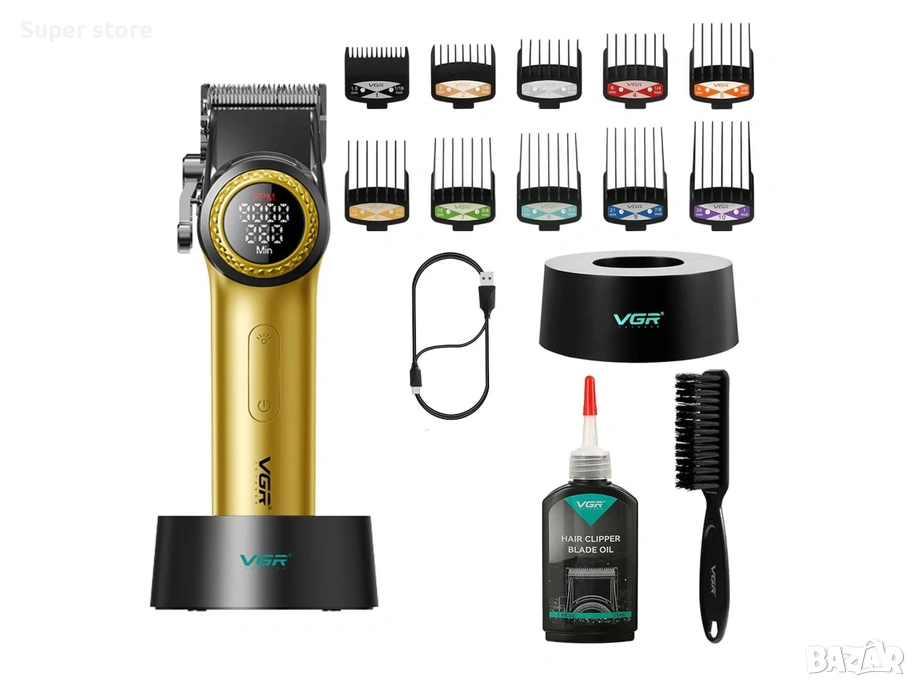 VGR V-001 Gold е мощен и луксозен инструмент за подстригване, проектиран за професионални резултати и прецизност. Този модел впечатлява със своя елегантен ергономичен дизайн в наситен златен цвят, който му придава изискан вид. Машинката е оборудвана с високоскоростен роторен мотор, осигуряващ постоянна мощност и гладко рязане дори на най-гъстата коса, и керамични остриета, които остават остри по-дълго и не се нагряват силно при работа.