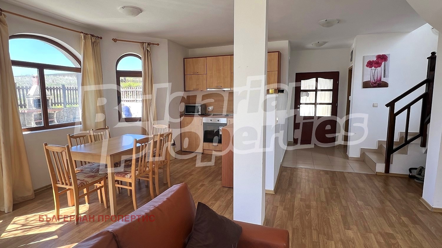 Интериорът е изпълнен с качествени материали и внимание към детайла, създавайки усещане за стил и завършеност. Пълното обзавеждане и оборудване може да разгледате на снимките.