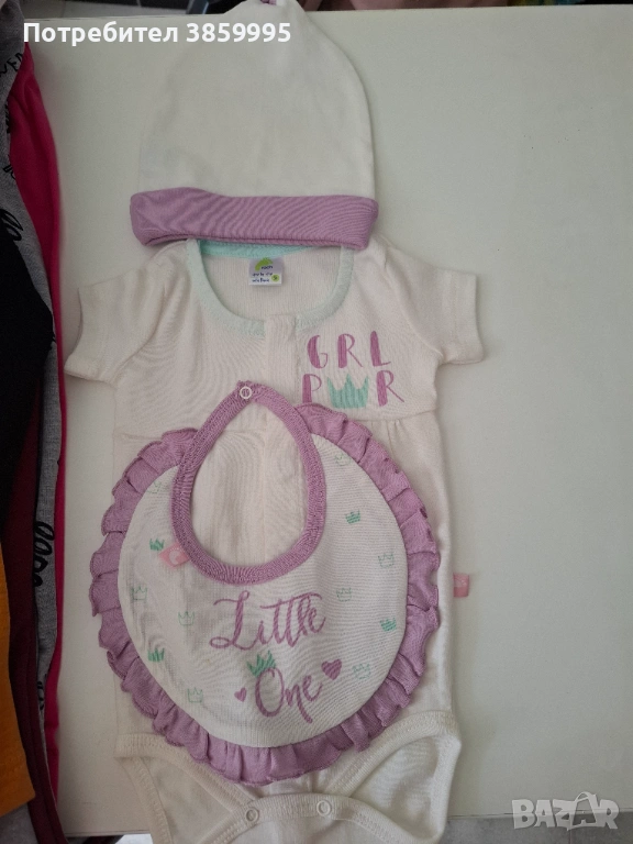 Налични различни размери за бебе момиче и бебе момче.Гащеризони,бодита,пелени,ританки,комплекти и др.Всичко на доставни цени! Попитайте за налични модели,размер и цена и ще ви изпратя снимки.