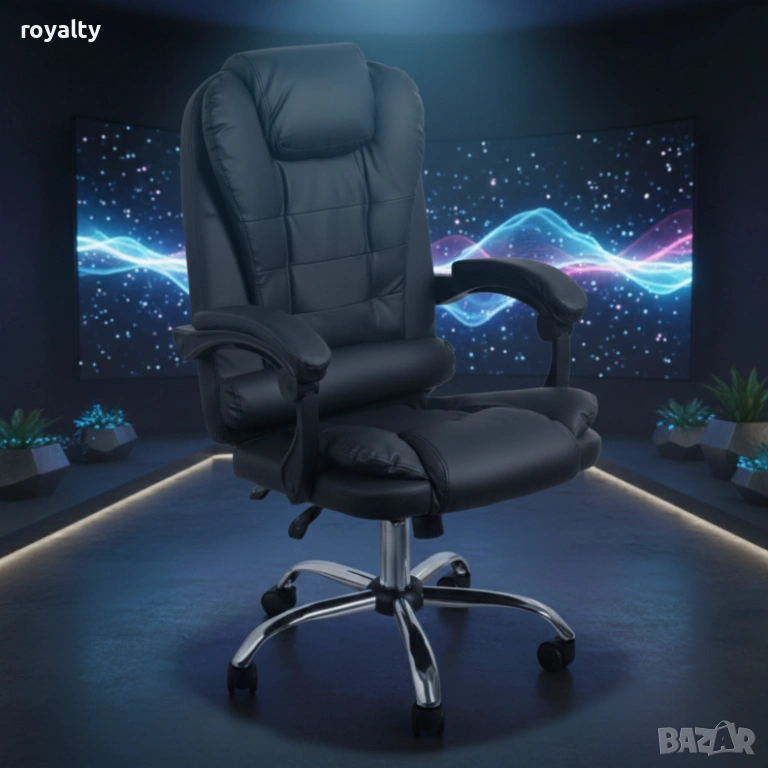 Ергономичен офис стол с лумбална опора от еко кожа в черен цвят – комфорт за дълги часове без болки