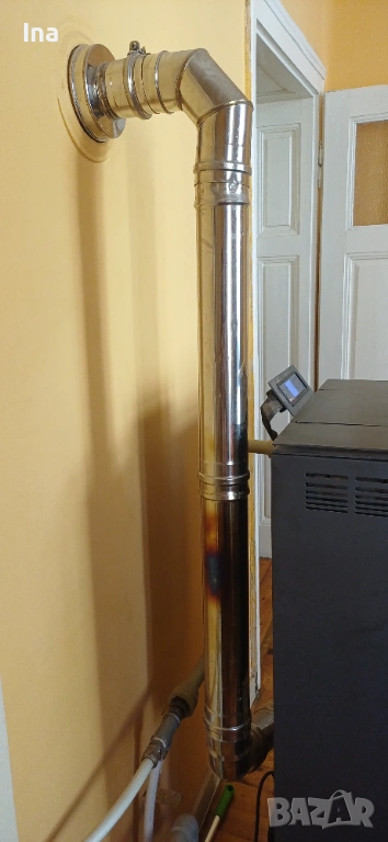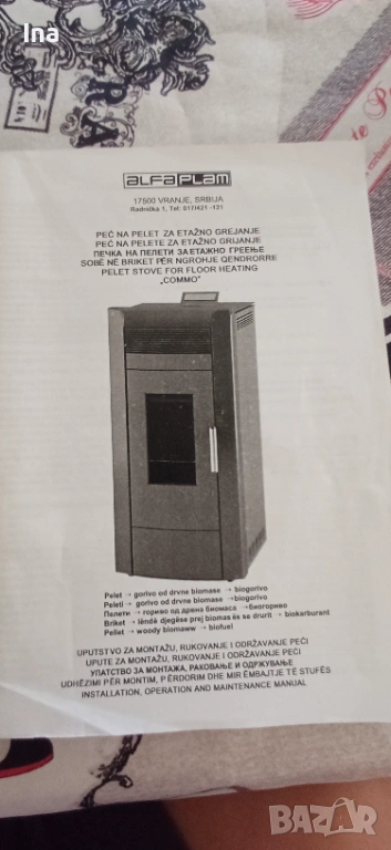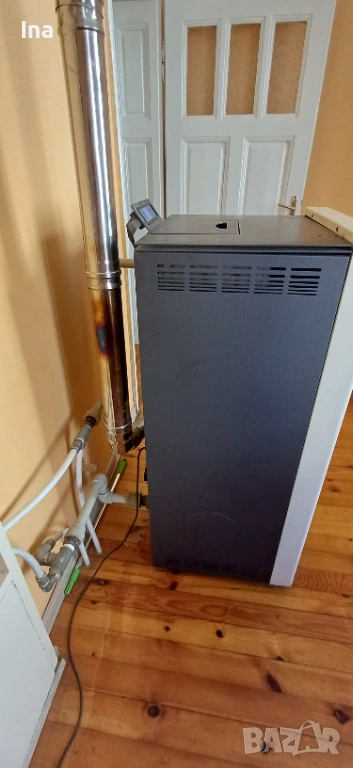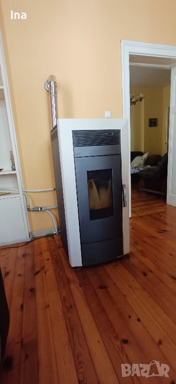 Използвана пелетна камина с водна риза за отопление - Commo 21, марка Alfa Plam, с мощност 21 kW. Подходяща за отопление на жилищни и офисни пространства. Продава се заедно със кюнците, има и нов комплект от тях (включен в цената ) , както и прахосмукачка за пепел Ribimex Cenerill (1000 w) за почистването на камината (също включена в цената) . Всичко е показано на снимките в обявата. Включени в цената са също нов комплект четки за почистване на кюнците. Снимани са и те. Прахосмукачката е с голям капацитет на коша- 18L , което позволява по-рядкото изпразване на коша. Маркуча й е метален , дълъг 1,10м. , смукателния й накрайник е дълъг 20см, който също е метален. Работи със сменяем HEPA филтър. Цената й като нова е 50 Евро. И прахосмукачката също е включена в цената на печката.