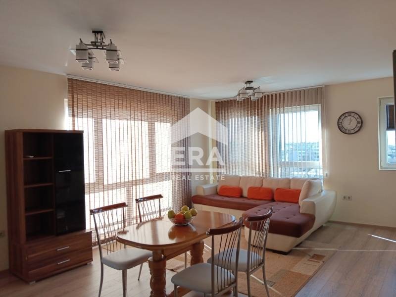 ЕРА Варна Тренд предлага под наем двустаен апартамент с площ 70 кв.м, разположен на четвърти етаж от общо 6 етажа. Имотът се състои от просторна дневна с кухненски бокс, спалня, обща за двете стаи тераса, коридор и баня с тоалетна. Изложението е юг/запад.