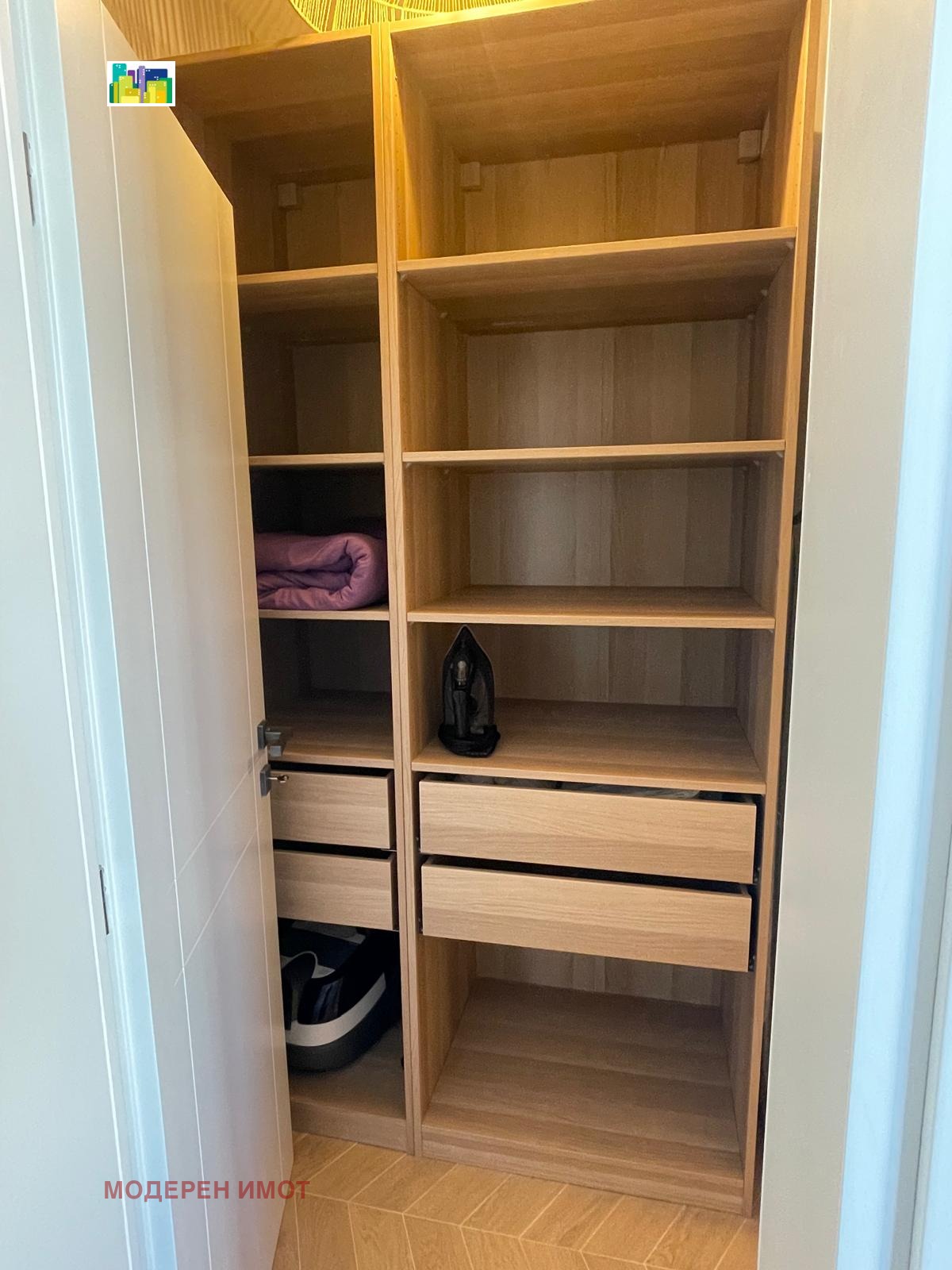 Перфектно разпределение и комфорт. Жилището е оборудвано до най-малкия детайл от висок клас вградени електроуреди до кафе машина и пълно кухненско оборудване. Просто влизате с куфар и започвате да живеете. Локацията е повече от удобна: 5 минути пеша до Нов български университет, 8 минути до метро Мизия и бърз достъп до центъра на София, НДК, Медицински университет и Софийски университет.