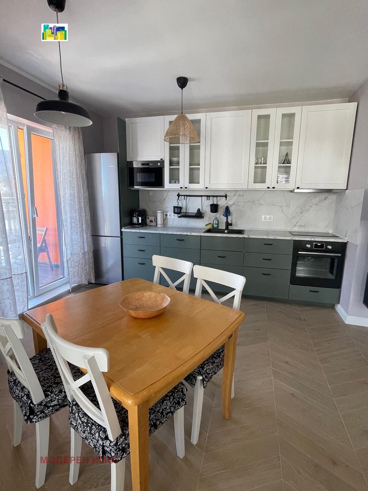 We present to you an exceptional one-bedroom apartment that combines modern design, functionality and coziness in one. With an area of 83 sq m, this property offers space, light and a feeling of a real home. Completely new construction and furnishings. Impressive views from the 5th floor. Perfect layout and comfort. The apartment is equipped down to the smallest detail - from high-end built-in appliances to a coffee machine and full kitchen equipment. You just move in with a suitcase and start living. The location is more than convenient: 5 minutes walk to the New Bulgarian University, 8 minutes to the 'Mizia' metro station and quick access to the center of Sofia, the National Palace of Culture, the Medical University and Sofia University. Gas heating + air conditioning in each room for maximum comfort in all seasons. Suitable for people with a taste for quality and detail. Contact us and be the first tenant of this wonderful home!
