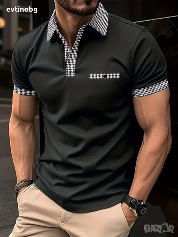 Мъжка ежедневна карирана риза с ревер,4 копчета,винтидж стил и къс ръкав → Обява 54125523