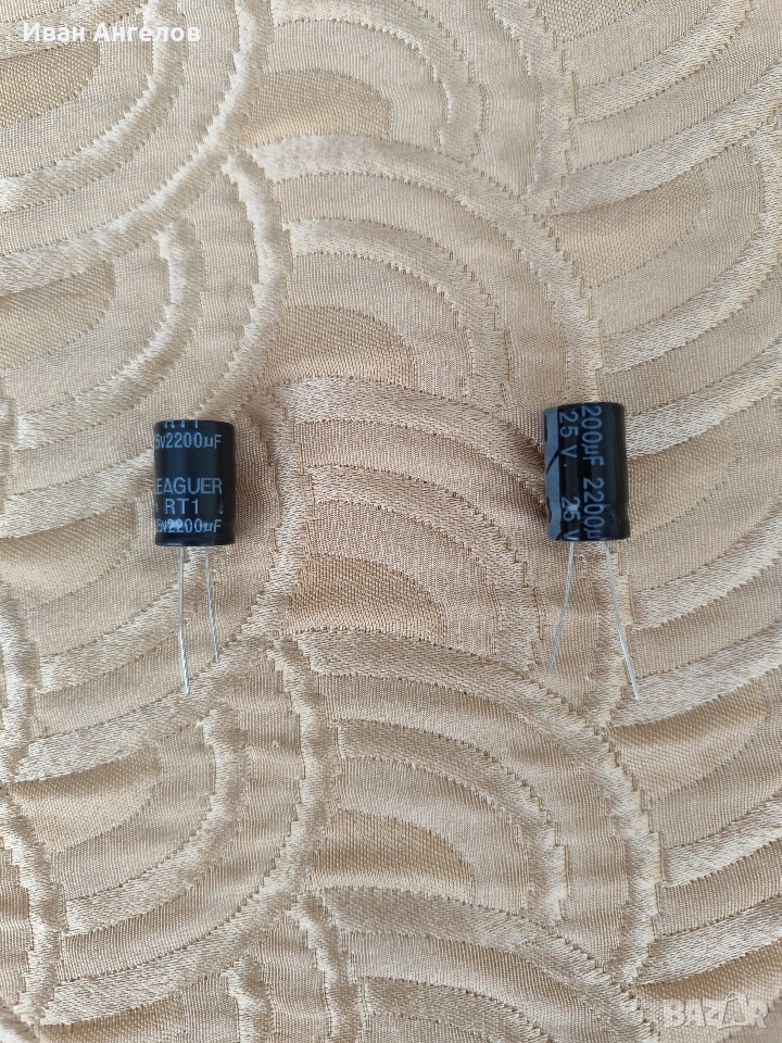 Продавам 2 броя нови кондензатори 2200 микрофарада, 25 волта.