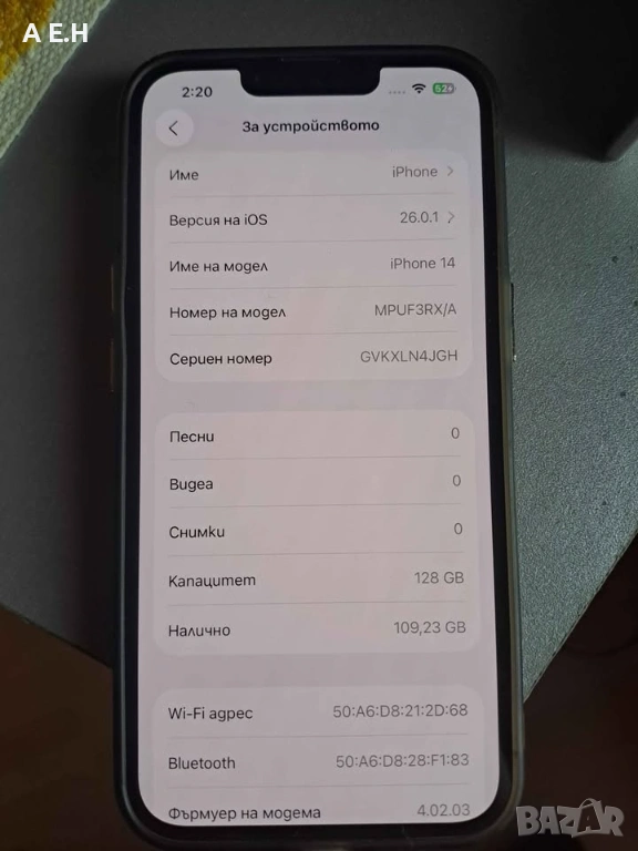 Apple iPhone 14, 128GB, Батерия 88%, Midnight Blue, Отлично състояние, снимка 1 - Apple iPhone - 54125615  Apple iPhone 14, 128GB, Батерия 88%, Midnight Blue, Отлично състояние, снимка 2 - Apple iPhone - 54125615  Apple iPhone 14, 128GB, Батерия 88%, Midnight Blue, Отлично състояние, снимка 3 - Apple iPhone - 54125615  Apple iPhone 14, 128GB, Батерия 88%, Midnight Blue, Отлично състояние, снимка 4 - Apple iPhone - 54125615  Apple iPhone 14, 128GB, Батерия 88%, Midnight Blue, Отлично състояние, снимка 5 - Apple iPhone - 54125615  Apple iPhone 14, 128GB, Батерия 88%, Midnight Blue, Отлично състояние, снимка 6 - Apple iPhone - 54125615  Apple iPhone 14, 128GB, Батерия 88%, Midnight Blue, Отлично състояние, снимка 7 - Apple iPhone - 54125615  Apple iPhone 14, 128GB, Батерия 88%, Midnight Blue, Отлично състояние, снимка 8 - Apple iPhone - 54125615  Apple iPhone 14, 128GB, Батерия 88%, Midnight Blue, Отлично състояние, снимка 9 - Apple iPhone - 54125615  Apple iPhone 14, 128GB, Батерия 88%, Midnight Blue, Отлично състояние, снимка 10 - Apple iPhone - 54125615 1/10