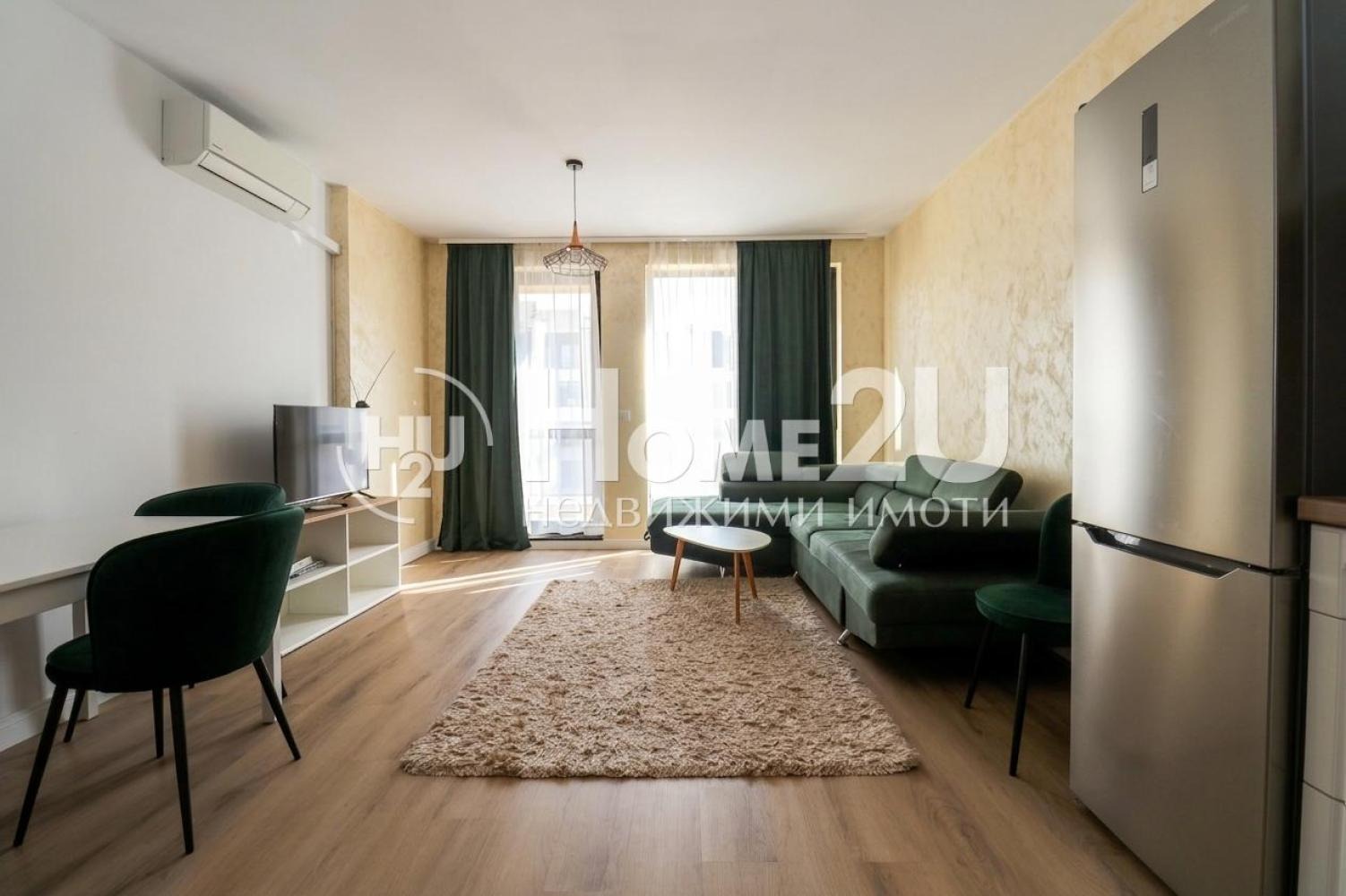 1. Хоум ту ю представя на вашето внимание двустаен напълно обзаведен апартамент в нова сграда в кв. Малинова долина. Имотът се намира в непосредствена близост до бул. Симеоноеско шосе.Жилището се намира на 3-ти етаж и има следното функционално разпределение: коридор, всекидневна с кухненски бокс и излаз на тераса с гледка към зелени площи, спалня с излас тераса, баня с тоалетна и отдело мокро поещение. Жилището е обзаведено с всичко необходимо за едно домакинство Отоплението е на ток. Към имота и подземно парко място включено в цената.