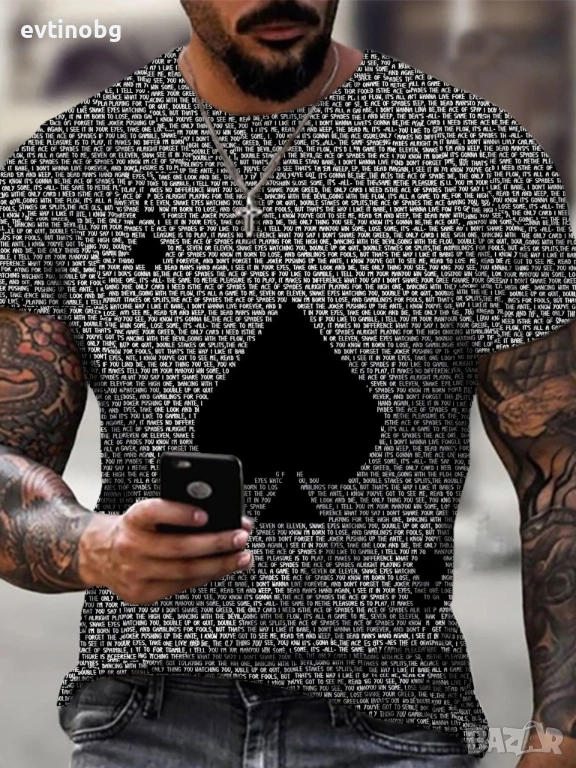 Мъжка тениска с къс ръкав,геометричен 3D принт с дизайн на Асо Пика → Обява 54125695