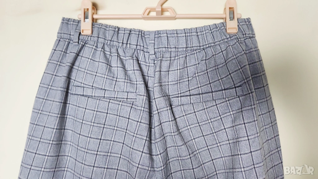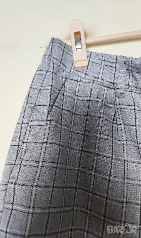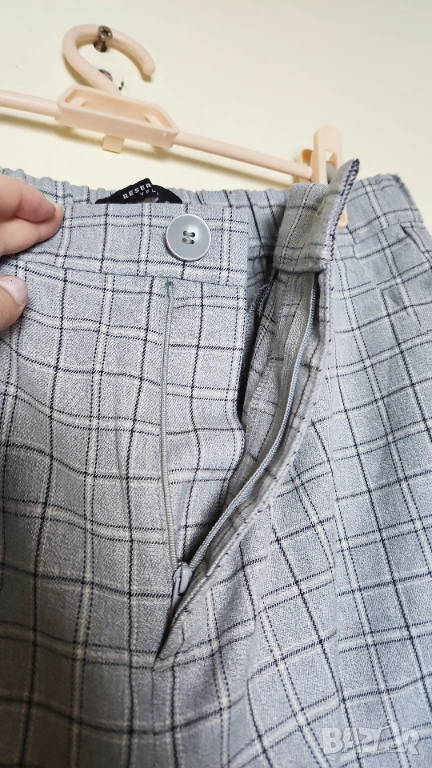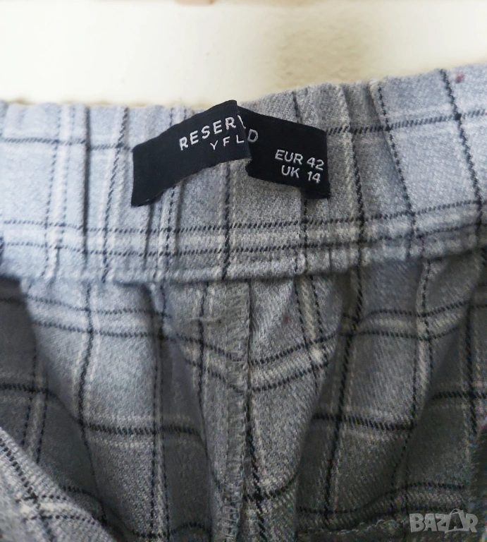 Стилни дамски панталони Reserved в сиво каре, подходящи както за ежедневие, така и за по-елегантна визия. Моделът е с права кройка, леко свободен, с удобен ластик на талията и копче отпред. Материята е приятна на допир и осигурява комфорт през целия ден.