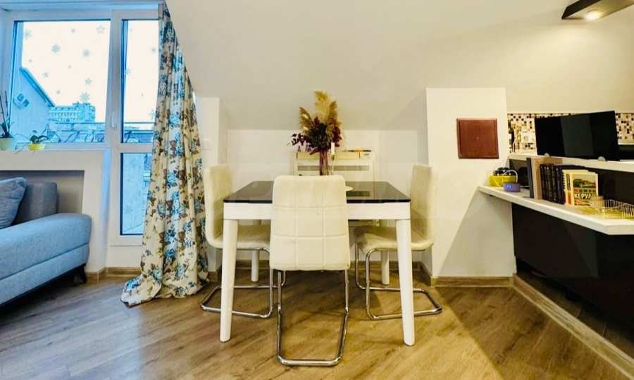 Жилището е напълно обзаведено с висок клас мебели и електроуреди, готово за нанасяне. Има прилежащо самостоятелно складово помещение, разположено удобно до паркинга.