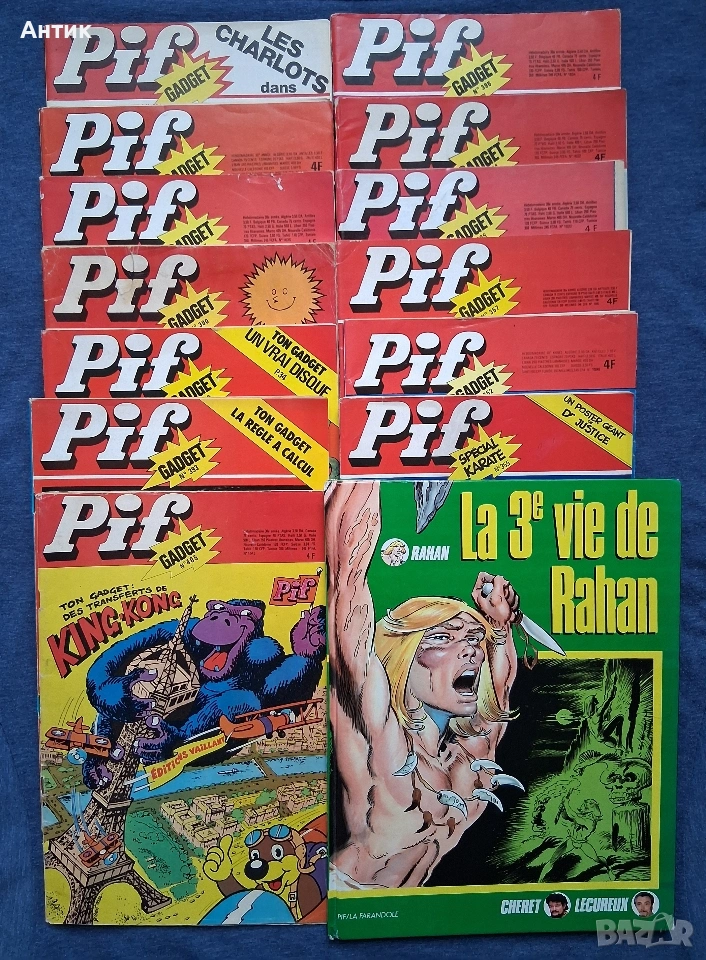 Лот Стари Фненски Списания Pif Gadjet 13 Броя Издадени 1975 год. Много Добро Състояние / Комикс Албум RAHAN Твърди Корици Издаден 1987 год. / Не се Предлагат на Бройка Цената е за Всички Изпращам с Еконт
