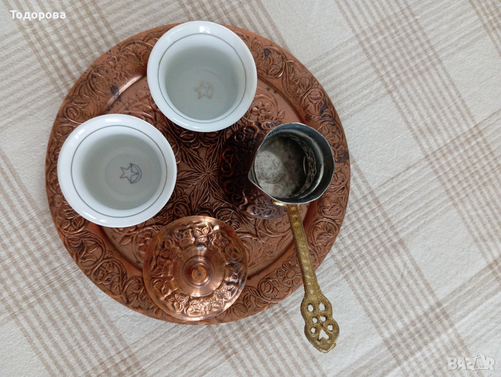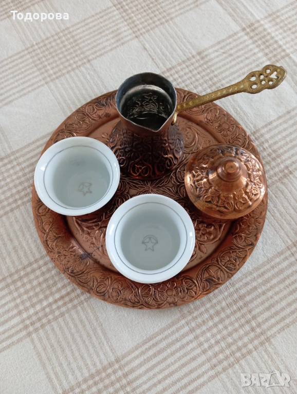 кафян сервиз чашки с джезве от мед → Обява 54126016