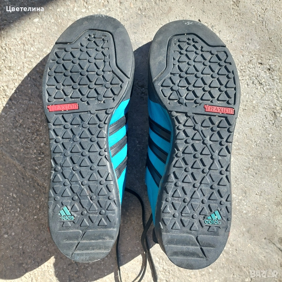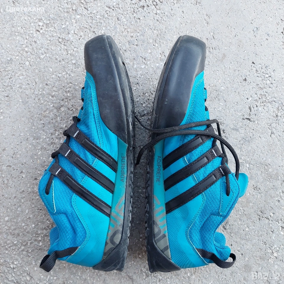 Продавам маратонки Adidas Terrex в син цвят, размер по етикет 46, но са умалени според мен. Носени малко, в отлично състояние, напълно здрави, изпрани. Доставка с опция преглед.