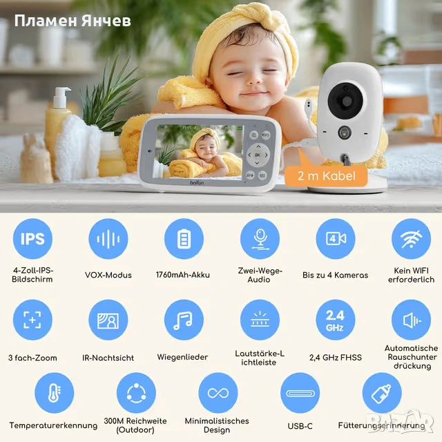 Бебешки монитор с 2 камери 720P инфрачервено нощно виждане - Бял, снимка 1 - Други - 54126178 Бебешки монитор с 2 камери 720P инфрачервено нощно виждане - Бял, снимка 2 - Други - 54126178 Бебешки монитор с 2 камери 720P инфрачервено нощно виждане - Бял, снимка 3 - Други - 54126178 Бебешки монитор с 2 камери 720P инфрачервено нощно виждане - Бял, снимка 4 - Други - 54126178 Бебешки монитор с 2 камери 720P инфрачервено нощно виждане - Бял, снимка 5 - Други - 54126178 1/5