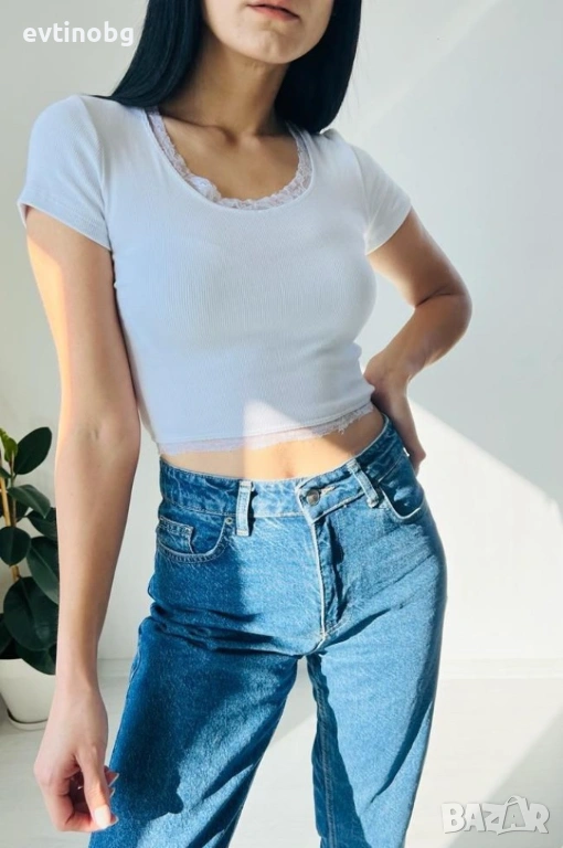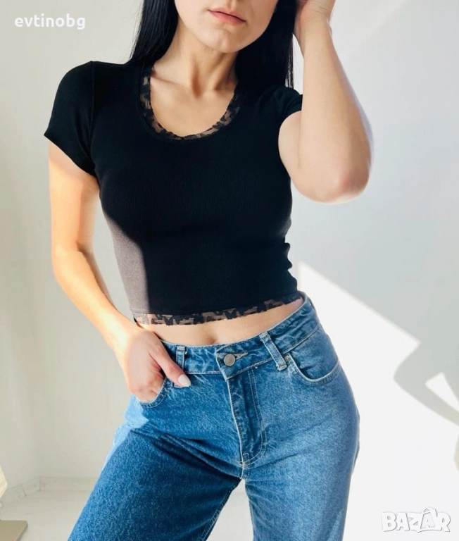 Къса дамска секси тениска с дантела на ръкавите / Цвят: бял, черен / Размер: С, М, Л → Обява 54126258
