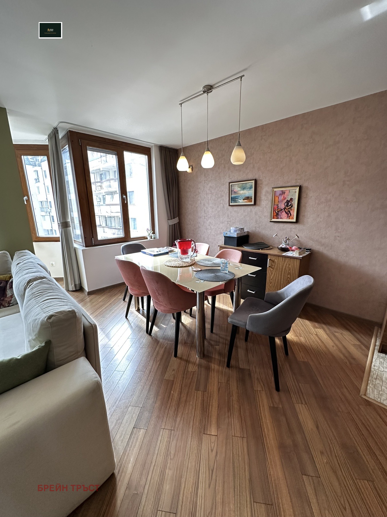 Жилище с елегантното обзавеждане, създаващо усещане за комфорт и спокойствие. Апартаментът е разположен на четвърти етаж и е с площ 100 кв. м, има южно и северно изложение, като от дневния тракт се открива гледка към Витоша.