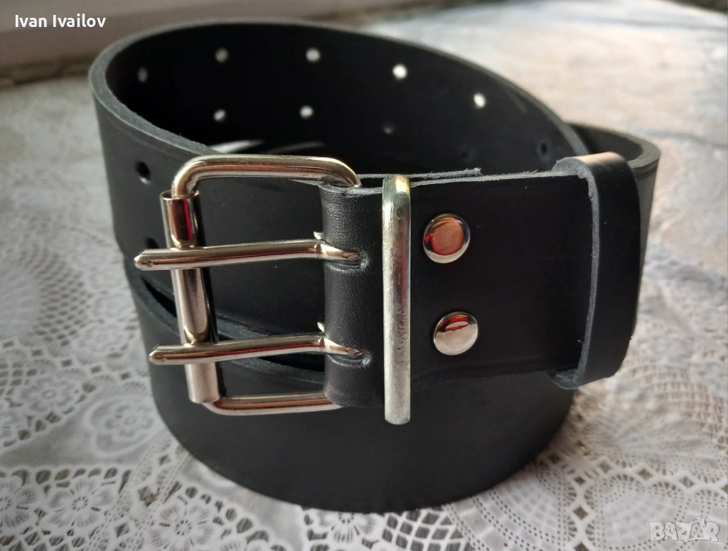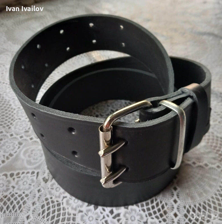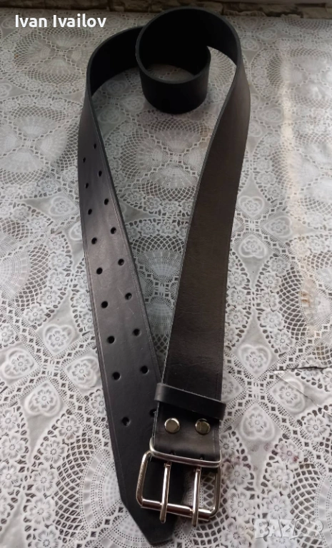 Продавам изключително масивен и здрав черен мъжки колан, ръчна изработка от плътна естествена кожа (бланк). Моделът е с екстра ширина от 5 см и двойна стоманена катарама – създаден за максимална устойчивост и стабилност на кръста.