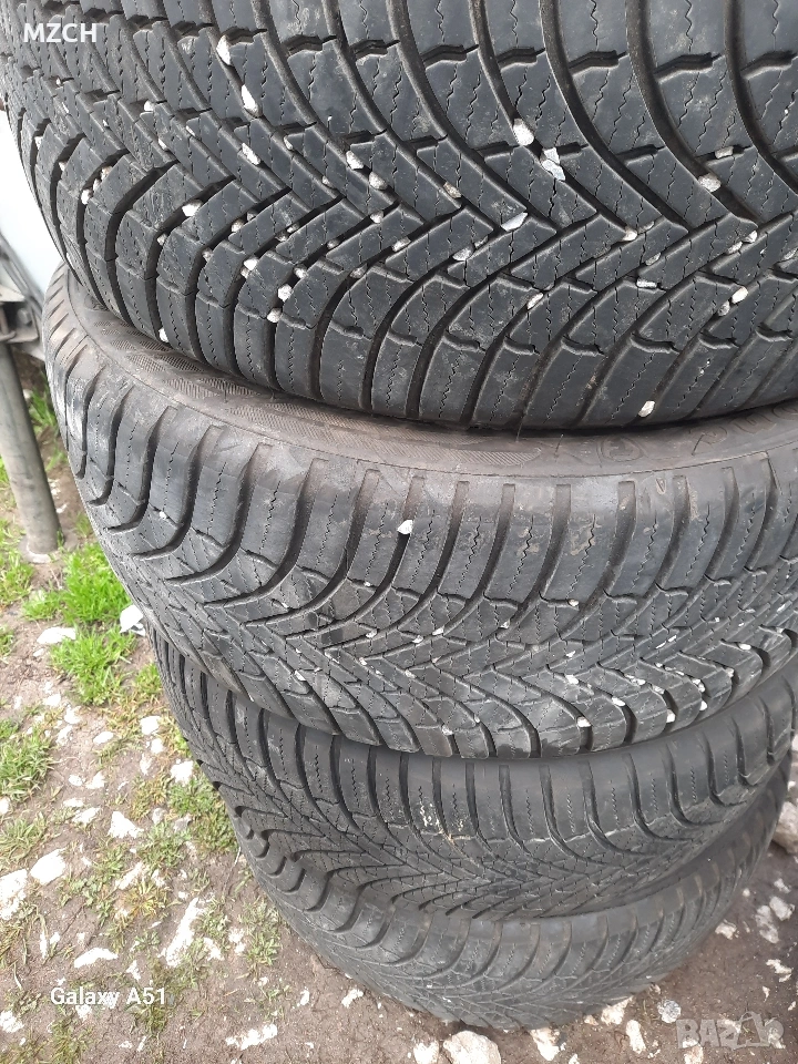 4 броя ляти джанти с гуми зимни за ШКОДА 5×100,15цола. джантите нямат кривини и заварки. гумите са хубави зимни, едната гума е скъсана.