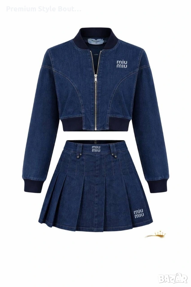 дамски комплект деним яке и пола miu miu