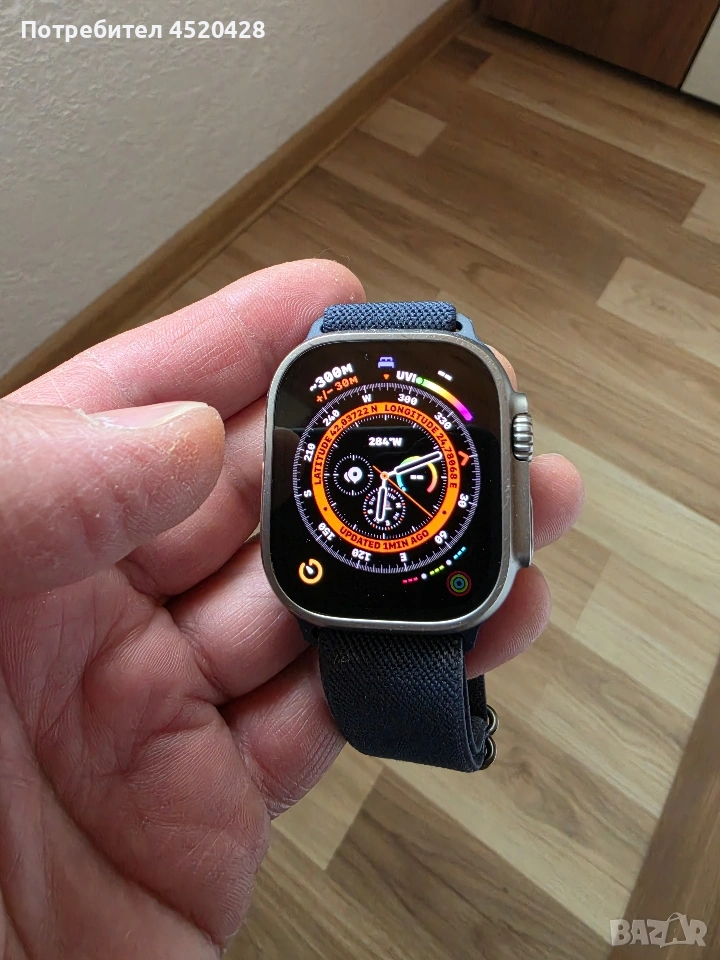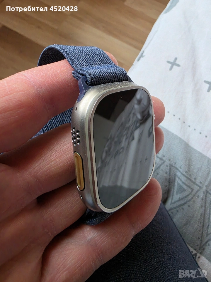 Apple Watch Ultra (1st Gen) – Титаний, 49mm, перфектно състояние Продавам Apple Watch Ultra първа версия, използван внимателно, без забележки по корпуса и дисплея. Батерия: 86% (държи спокойно 1.5–2 дни) Размер: 49mm Материал: Титаниев корпус Водоустойчив, подходящ за спорт и ежедневие , GPS + Cellular (LTE) С кабел за зареждане– оригинална каишка Часовникът работи перфектно, без бъгове или проблеми.Продавам го, защото преминах към Android. Цена: 350 евро (коментар в рамките на разумното) Възможно лично предаване Моля, само сериозни обаждания.