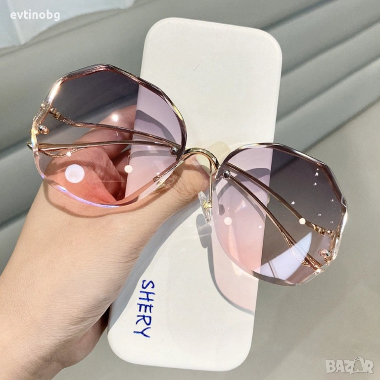 Дамски полигонални слънчеви очила без рамки + калъфче. → Обява 54126743