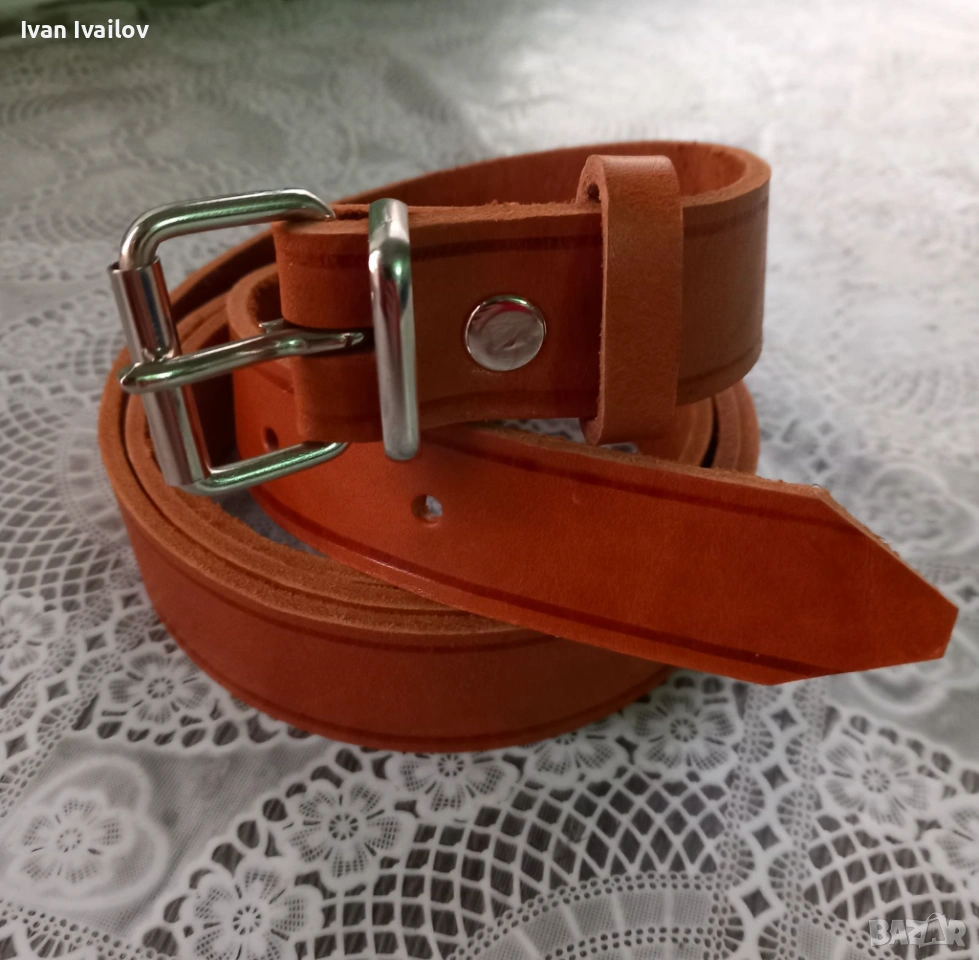 Продавам нов мъжки колан, ръчна изработка от плътна естествена кожа. Моделът е с ширина 3 см – класически размер за официални панталони, костюми или по-фини дънки. Цветът е наситен керемиден нюанс (коняк), който стои много стилно.