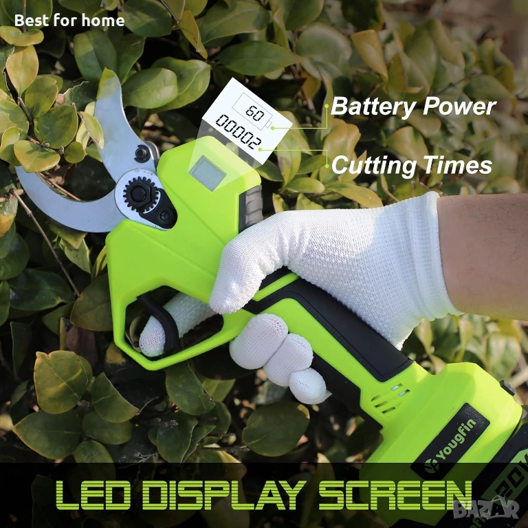 【LCD дисплей и прецизно рязане】: Нашите електрически ножици за клони Yougfin разполагат с LCD дисплей, показващ броя на срязванията и оставащия живот на батерията. С ергономичния си дизайн, те предлагат удобно захващане, което улеснява маневрирането около клони, без да напрягате китките си.
