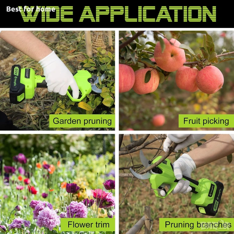 【SK5 Остриета и висок капацитет на рязане】: Остриетата на нашата акумулаторна ножица са изработени от SK5 висококачествен въглерод и могат да режат клони с диаметър 40 мм (1,6 инча). Незалепващото покритие осигурява лесно почистване и по-дълъг експлоатационен живот. С предпазен превключвател, противоплъзгаща дръжка и удароустойчив дизайн, той е идеален за градини и ферми.