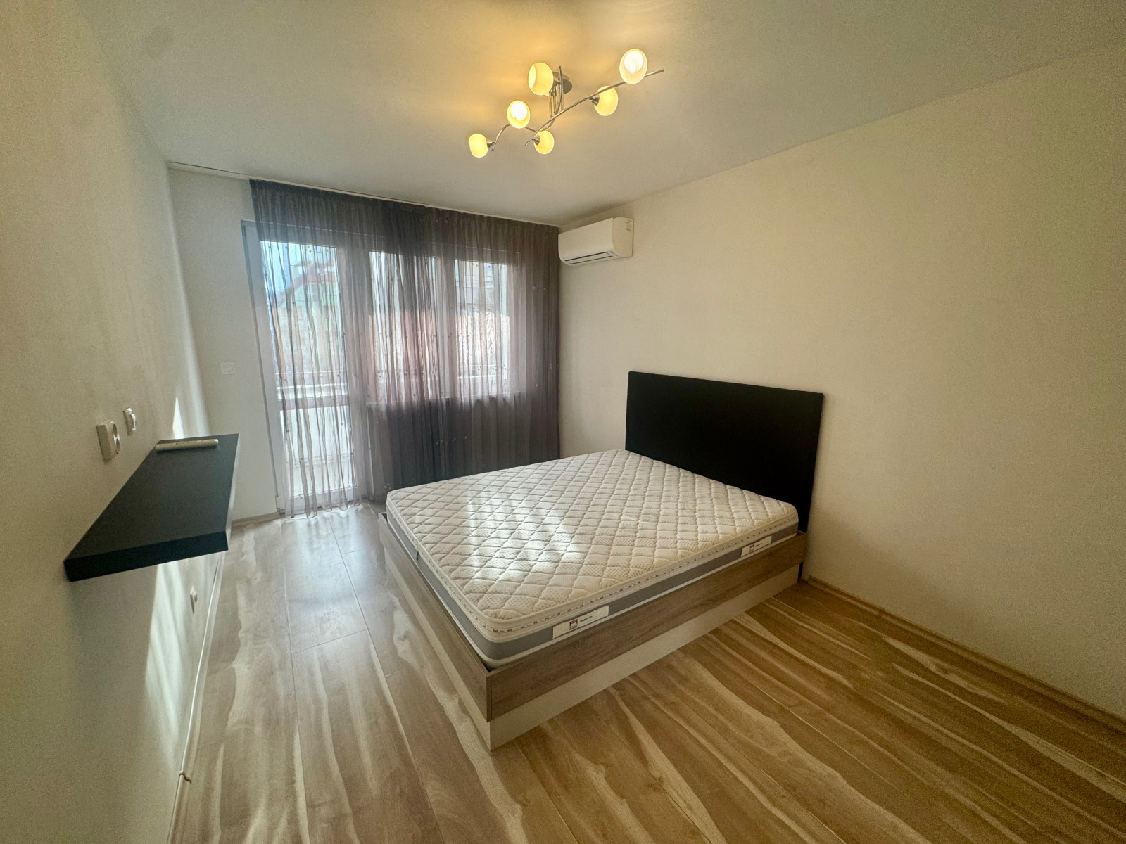 Състои се от коридор, хол с кухненски бокс, просторна спалня, южна тераса, баня с тоалетна. Обзаведен с всичко необходимо за едно домакинство. Отоплението е на ТОК с климатици.