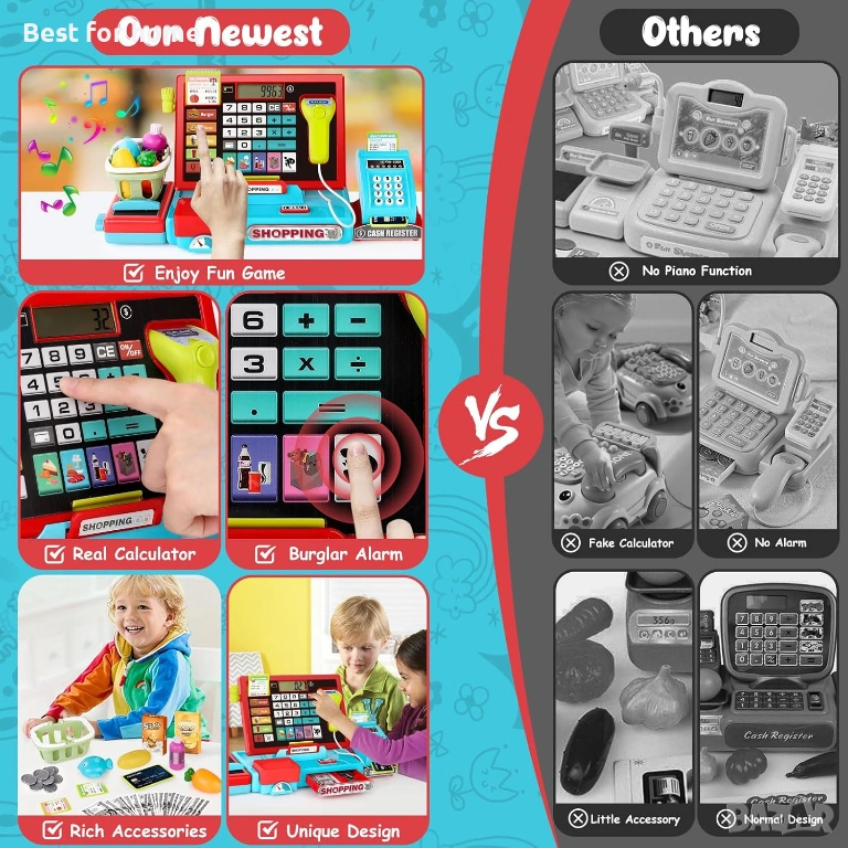 [Играчка касов апарат за деца] Играчката касов апарат се предлага с истински калкулатор, който помага на децата да научат основна математика, да броят пари и да развият комуникативни умения! Децата могат да се преструват, че играят игри в магазин за хранителни стоки с приятели или за забавление със семейството. Това е задължителна играчка за малки деца на възраст 4-8 години като образователен подарък.