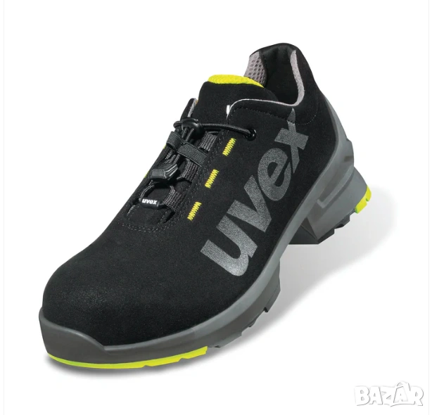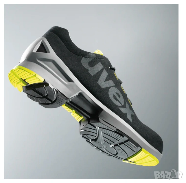 Предпазните обувки uvex 1 поддържат естественото движение на тялото, намалявайки натиска и стреса, като същевременно увеличават максимално комфорта. Двуслойната, лека PU подметка с подвижна антистатична удобна стелка осигурява изключително абсорбиране на удара, минимизирайки умората и потенциалните проблеми с гърба, коленете и ставите, които хората могат да развият, особено при продължително стоене. Системата за опора на петата, интегрирана в подметката, обгръща стъпалото за по-голяма стабилност и сигурност, без да ограничава свободата на движение. Тя осигурява и допълнителна защита от страничен удар. Изцяло безметалната горна част на uvex е изработена от едно парче високотехнологичен микрофибър, осигуряващ изключителен комфорт при носене без точки на натиск.