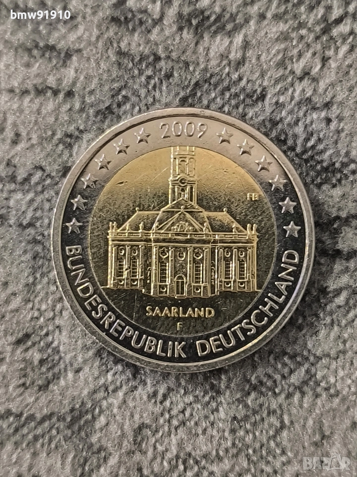 Това е възпоменателна монета от 2 евро от Германия, посветена на федералната провинция Саарланд. Дизайн: Изобразява църквата „Свети Лудвиг“ (Ludwigskirche) в Саарбрюкен. Година: Въпреки че на монетата може да пише 2006, серията Bundesländer, към която принадлежи Саарланд, е издадена през 2009 г..