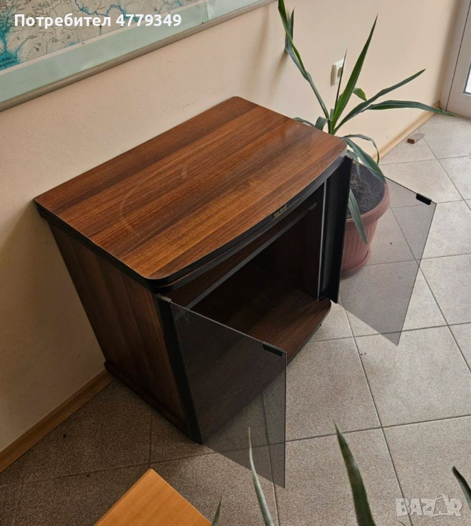 TV шкаф, на колелца, с въртящ се плот и стъклена витрина.Много запазен.
