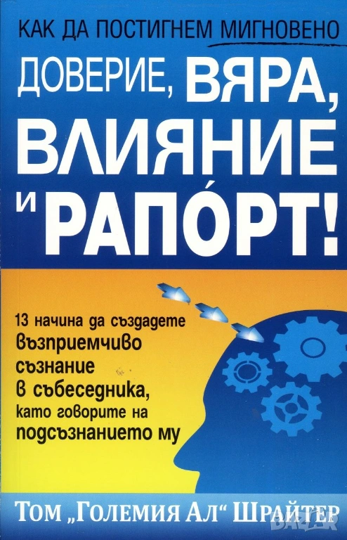 7. Как да постигнем мигновено доверие, вяра, влияние и рапорт!- Том Шрайтер (Книгата е в отлично състояние, но има подчертавания с червен молив на различни важни места в текста), намалена на 3лв