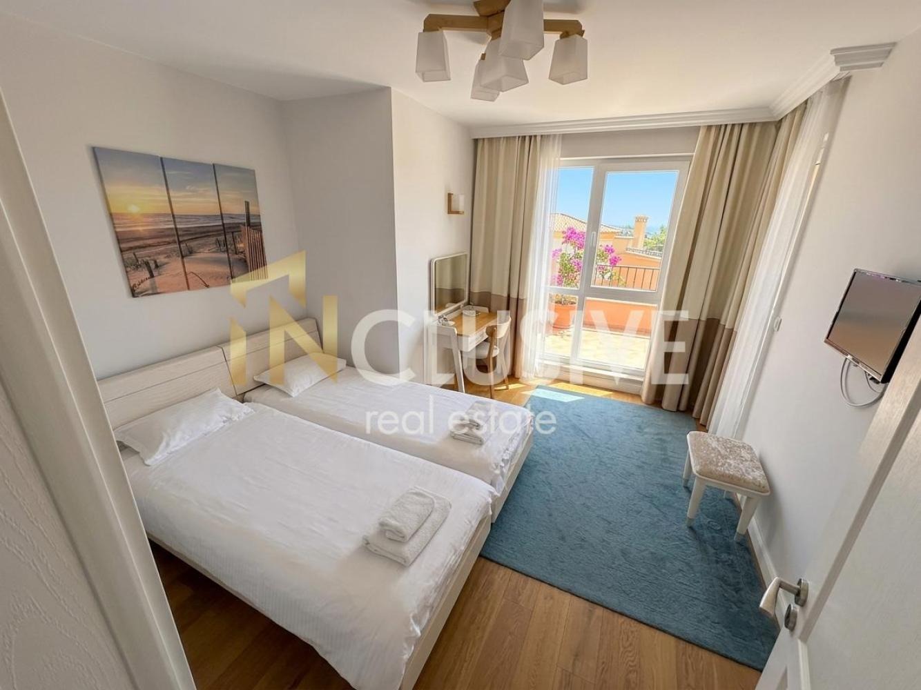 * Три просторни спални едната с две самостоятелни легла, а останалите две с двойни легла, подходящи за различни нужди и предпочитания. Три бани удобство, което рядко се среща. Просторна всекидневна с напълно оборудвана кухня. Общ балкон за сутрешна чаша кафе или вечерен релакс.