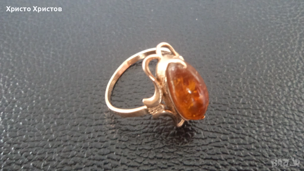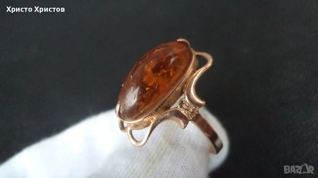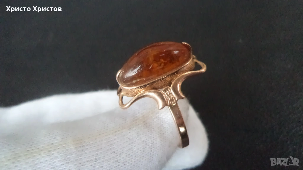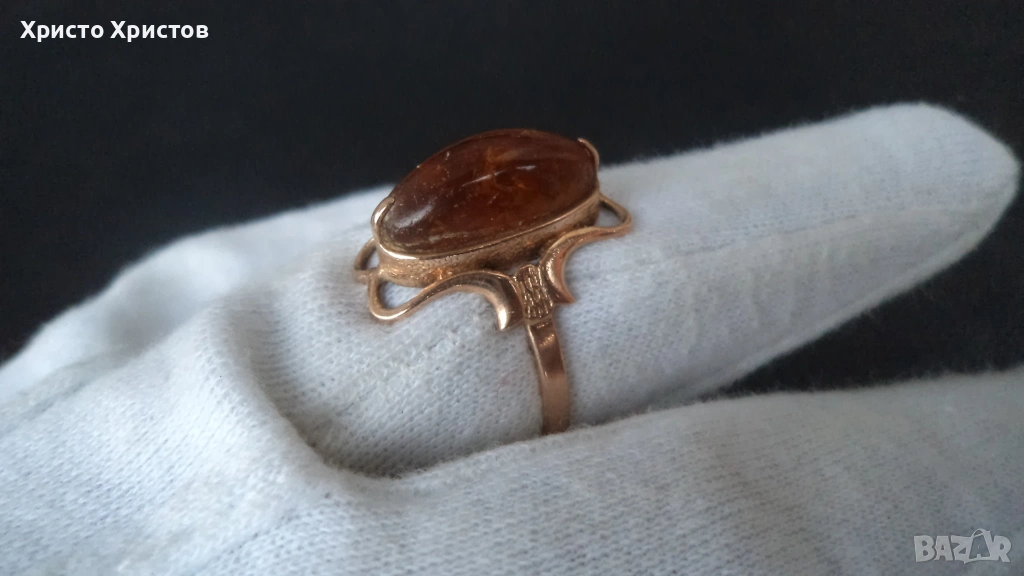Руски-СССР златен пръстен с кехлибар → Обява 54128115