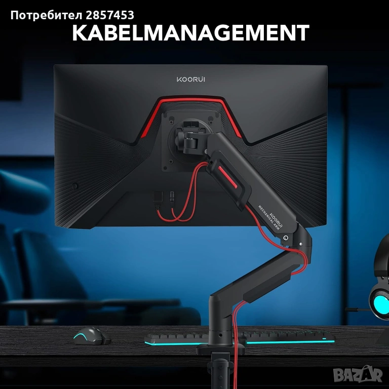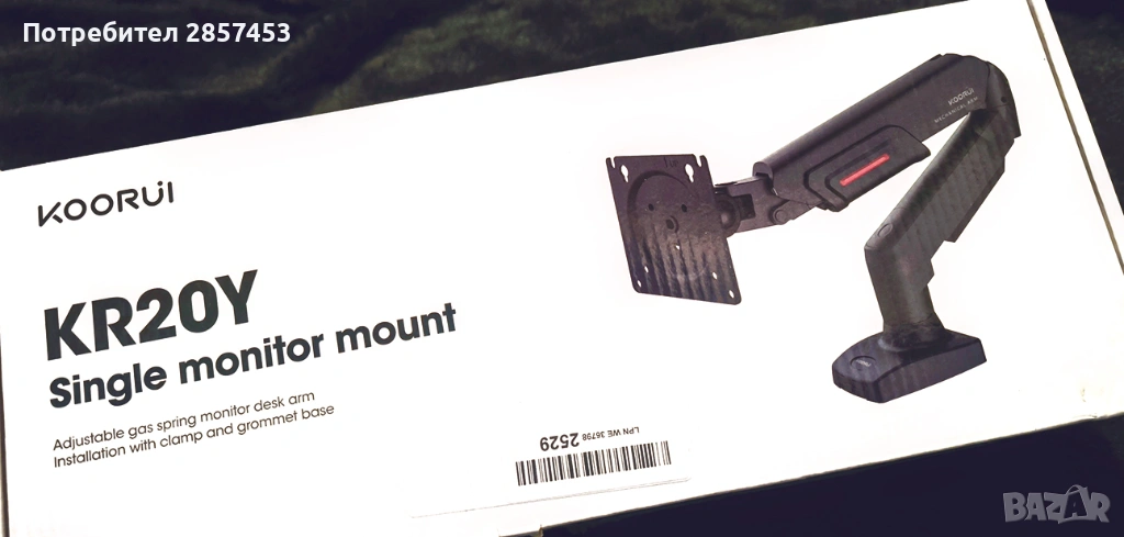 KOORUI, KR20Y, стойка за монитор, рамо за монитор, monitor arm, gas