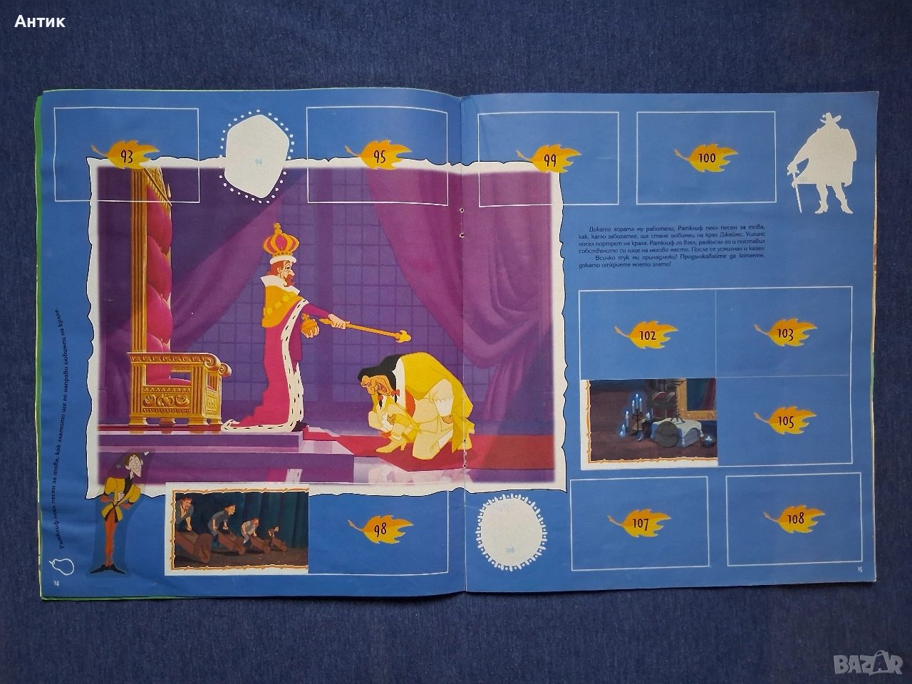 Рядък Албум за Лепенки Покахонтас Panini 1996 год. Съдържа 50 Броя Лепенки / на някой страници има забележки , отлепени лепенки което е прокъсало мястото на залепване Съобразено е със Цената / Изпращам с Еконт