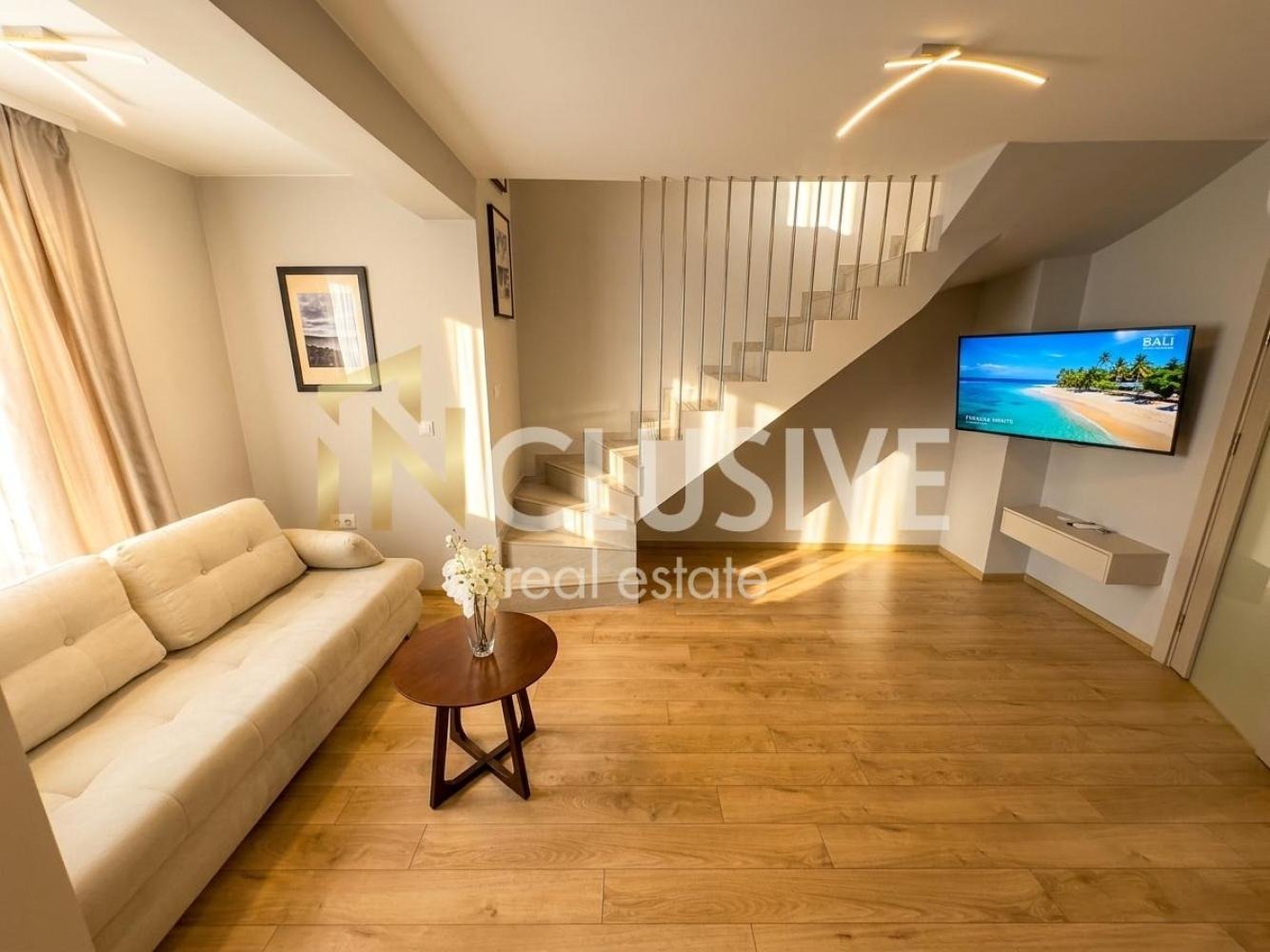 Бутиковият мезонет с обща площ от 90 кв.м е разпределен на две нива, създаващи усещане за пространство, уют и уединеност: