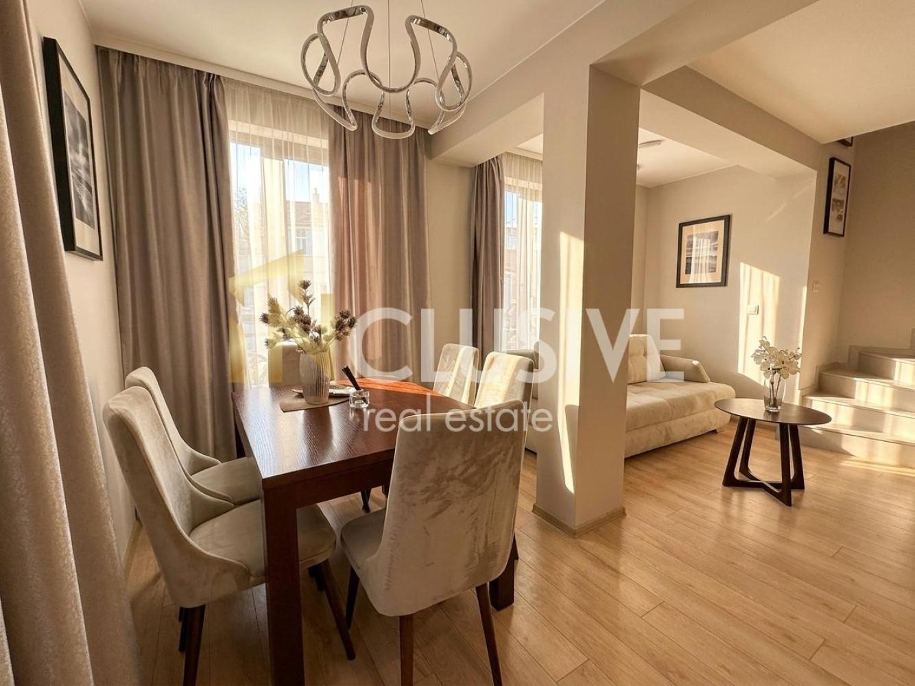 INCLUSIVE ВАРНА с гордост Ви представя под наем един от най-атрактивните имоти в центъра на Варна бутиков мезонет с изисkaн дизайн и всичко необходимо за комфортен начин на живот. Елегантност, модерност и безупречна локация - това е същността на този първокласен апартамент, намиращ се в нова сграда в самия център на Варна, в непосредствена близост до хотел 'Черно море' и Морската градина. Престижният квартал предлага отлична инфраструктура, богат търговски и ресторантьорски живот, а плажната ивица е само на пешеходно разстояние.