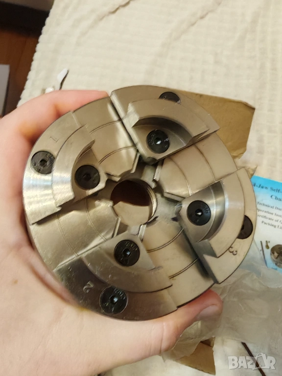 Продавам чисто нов 4-челюстен самоцентриращ патронник за струг, в отлично състояние, не е използван.
