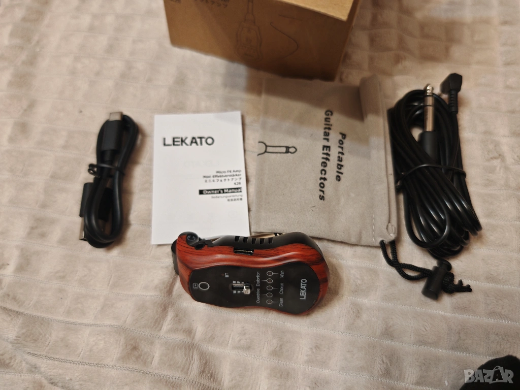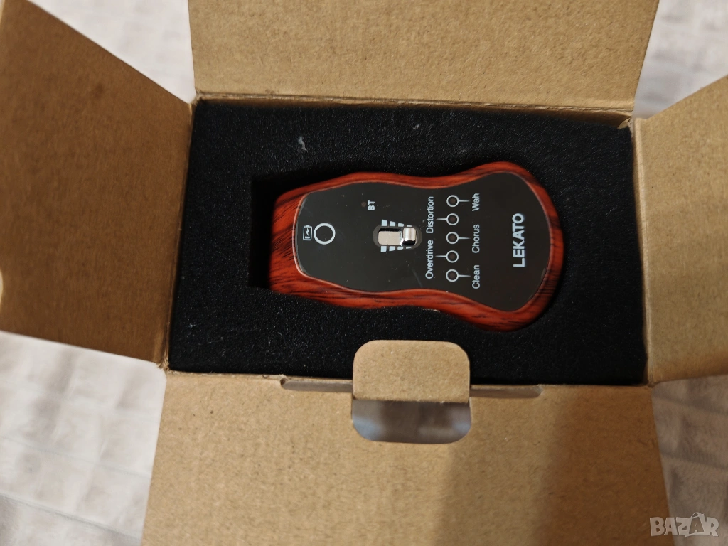Продавам чисто нов LEKATO мини китарен усилвател с вградени ефекти и Bluetooth. Устройството се включва директно в китарата и позволява да свириш навсякъде без голям усилвател.