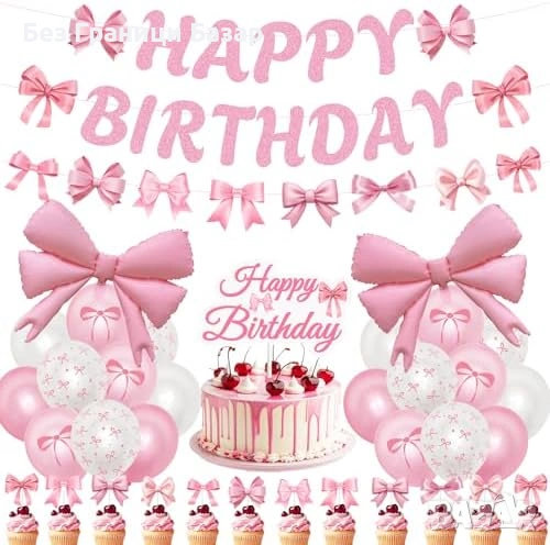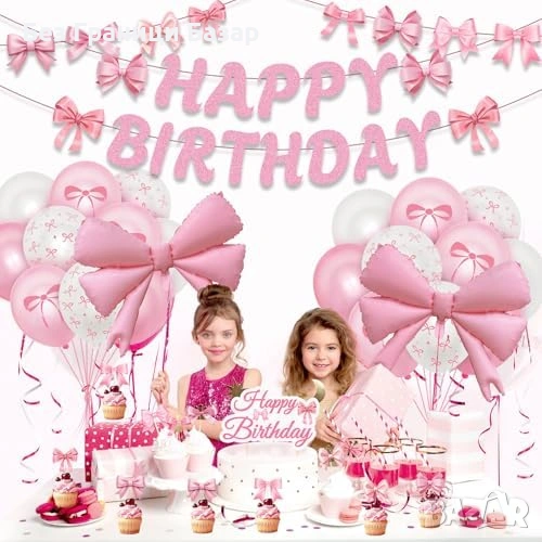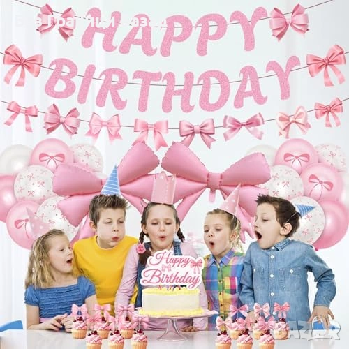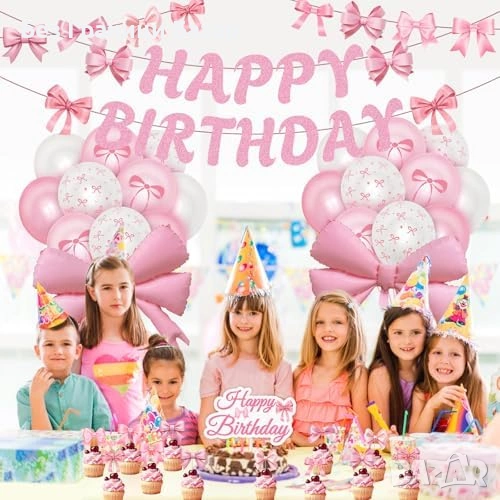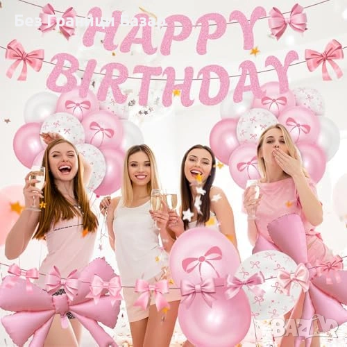 Нова Розова парти декорация за рожден ден с панделки 37 части украса балони